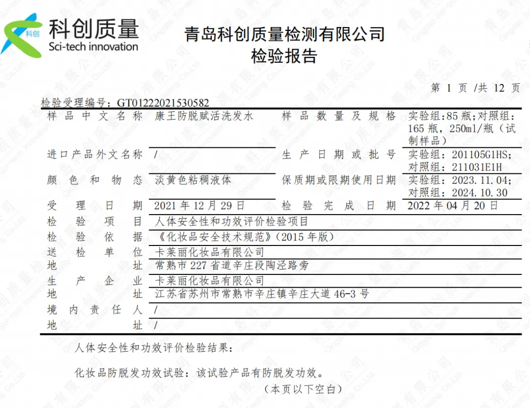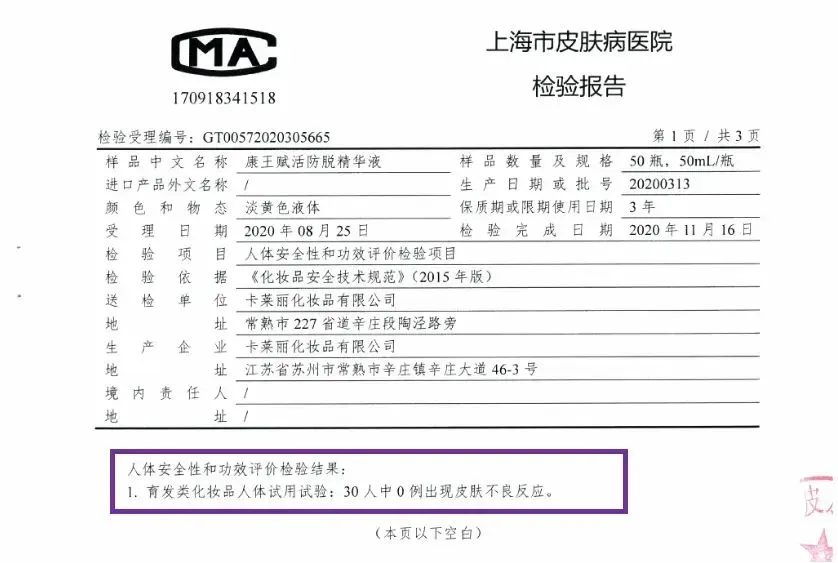 有多强?根据人体功效测试报告,使用康王赋活防脱精华: