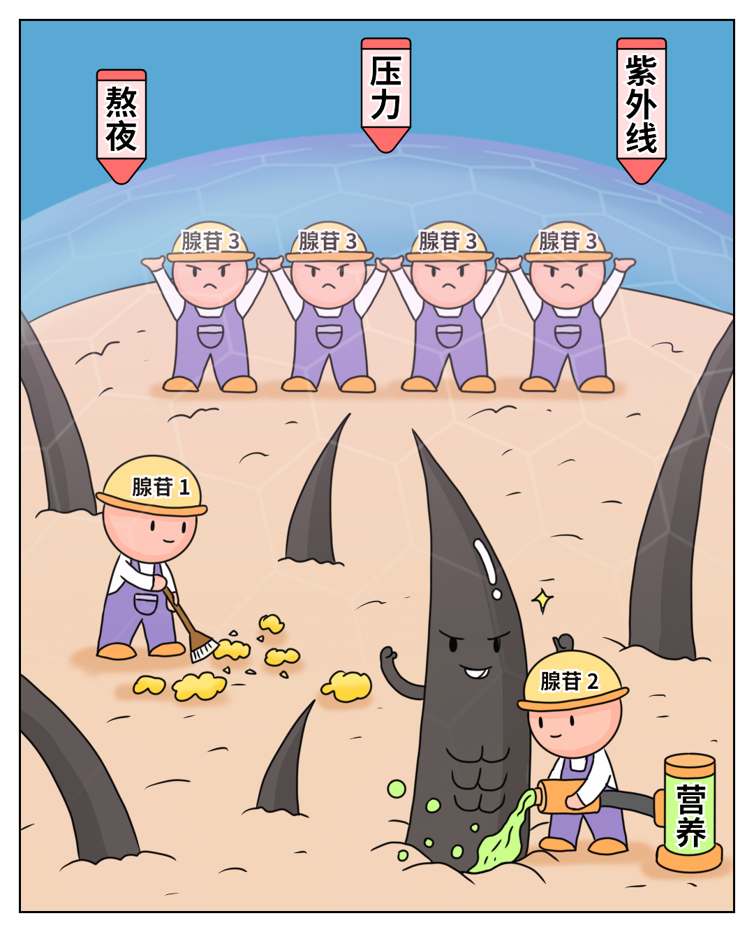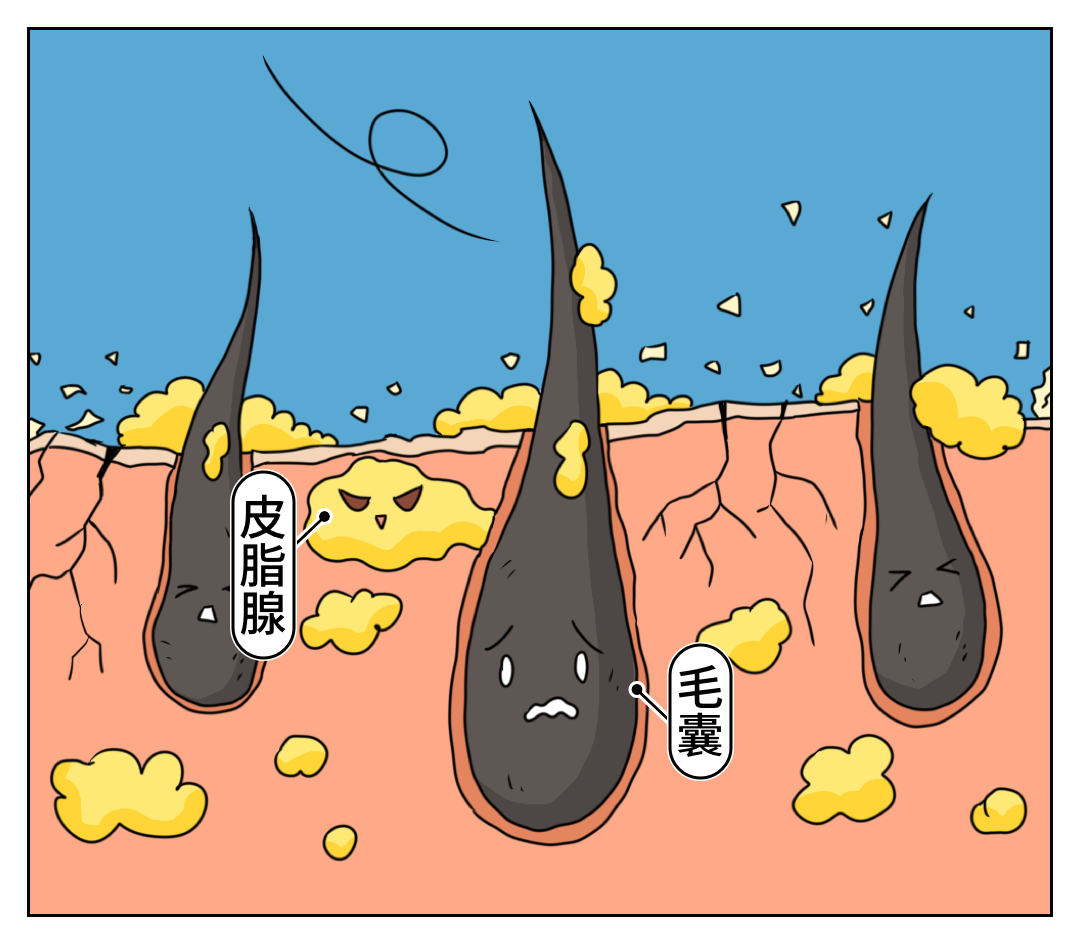 首当其冲的就是毛囊,活力下降,提前进入「休止期」,掉发量猛猛增加。加上头油头痒还敏感,一整个头皮灾难。