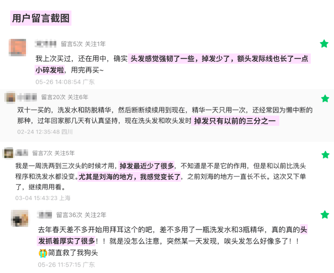 用户评价是最好的代言,坚持用的朋友,有不少收获了好效果。我们内部也都是人手几瓶,不断回购——